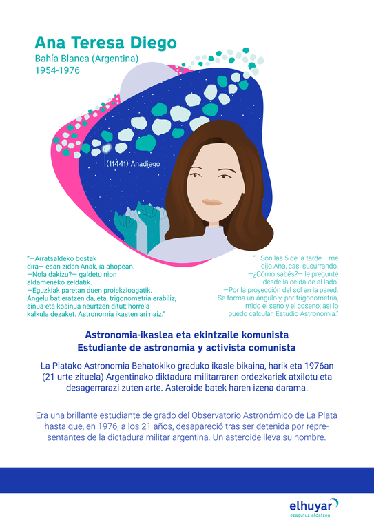 "Ana Teresa Diego, estudiante de astronomía de 21 años, fue secuestrada por la dictadura militar argentina."