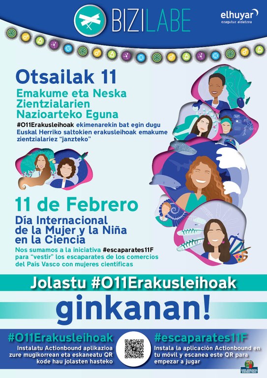 Bizilabe trabaja durante todo el año para que las chicas participen en temas de ciencia y tecnología, poniendo en valor y visualizando el trabajo de las científicas para crear referentes. Y en relación con esta fecha, los comercios van a ofrecer la posibilidad de realizar una yincana mediante el QR de los carteles.