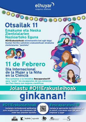 Más de 50 comercios de Barakaldo se suman al ‘Día Internacional de la Mujer y la Niña en la Ciencia’ con una decoración especial en sus escaparates. La iniciativa ‘Escaparates 11 de febrero’, promovida por el Ayuntamiento de Barakaldo y Elhuyar junto con las Asociaciones ACE, ABK y Sanbi Dendak, dará visibilidad en el municipio a la labor de las mujeres en el sector de la Ciencia y Tecnología.