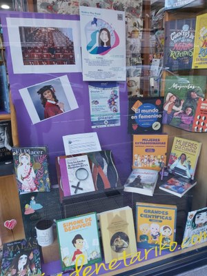 | Libreria Ofizalde | Santo Domingo de Guzman | Este comercio ha decorado su escaparate con la mujer científica Mari Luz Esteban Galarza. |