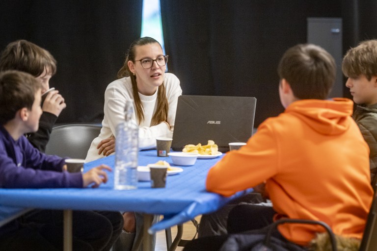 Cada mesa ha acogido a una profesional y a un grupo de jóvenes y se ha fomentado el intercambio de ideas mediante una dinámica participativa. Las profesionales han ofrecido consejos y orientación a las y los jóvenes, que, a su vez, han tenido la oportunidad de conocer de cerca a mujeres del ámbito científico-tecnológico. Las profesionales han ido recorriendo las distintas mesas para dinamizar y enriquecer el intercambio de ideas.