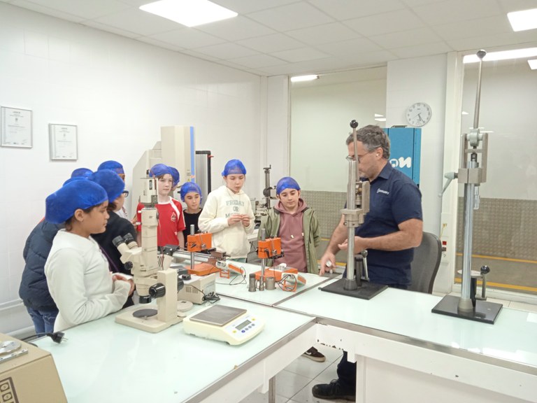 Allí han visto el proceso productivo de los envases de principio a fin: desde un disco de aluminio hasta que el envase vacío está listo para ser enviado al cliente. También han conocido detalles litográficos. En el laboratorio han visto cómo se realizan la medición de la capa de pintura de los envases y las pruebas de presión del envase.