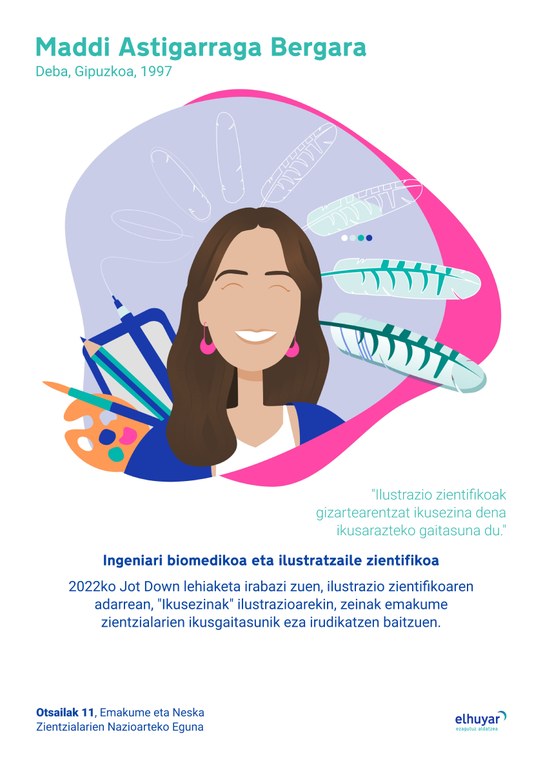 2022ko Jot Down lehiaketa irabazi zuen, ilustrazio zientifikoaren adarrean, "Ikusezinak" ilustrazioarekin, zeinak emakume zientzialarien ikusgaitasunik eza irudikatzen baitzuen.