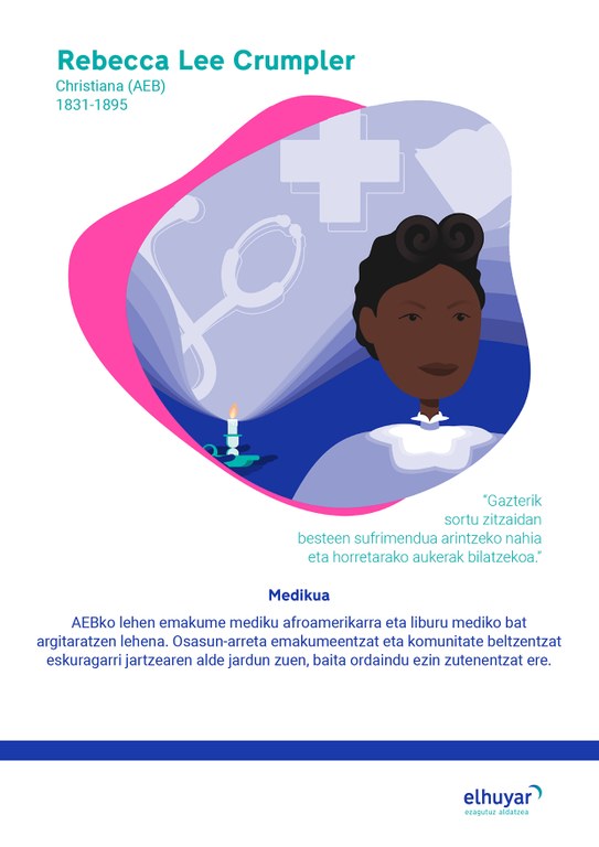 Rebecca Lee Crumpler Estatu Batuetako lehen emakume mediku afroamerikarra izan zen. Delawaren jaioa, Pennsylvanian bizi zen izeba batekin hazi zen. Izeba emakume inspiratzailea izan zen Rebeccarentzat, bizilagunak gaixotzen zirenean zaintzen eta sendatzen zituelako.