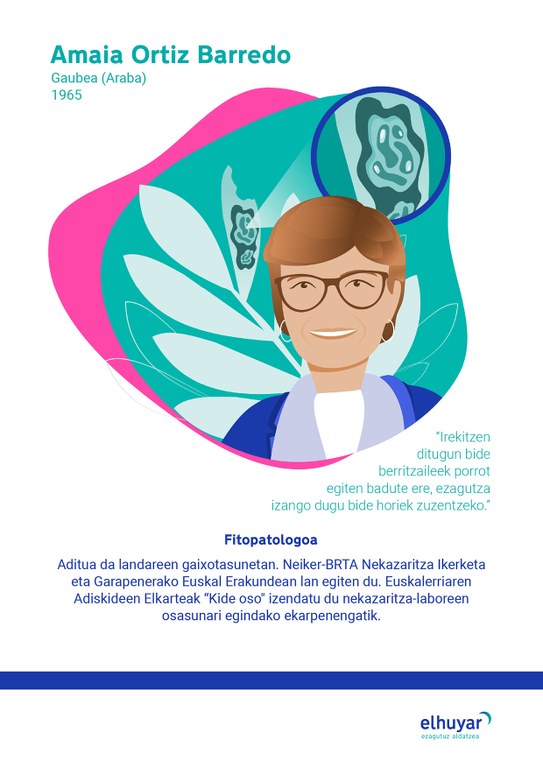 Unibertsitateko azken urtean, praktikak egiteko aukera bilatzen ari zela, Arkautiko Nekazaritza Esperimentazio Zentrora (gaur egungo Neiker) iritsi zen kasualitatez. Hasieran, biologoentzako lekurik ez zegoela esan bazioten ere, azkenean onartu zuten landareetako birus eta bakterioetan espezializatutako talde batean. Bere doktore-tesian, azukre erremolatxari eragiten zion gaixotasun biriko baten aurrean estrategia berritzaile bat garatu zuen, eta lan horrengatik sari bat jaso zuen. Ordutik, urteak daramatza Neiker erakundean lanean, landareei erasotzen dieten organismoak, izurriteak eta intsektuak aztertzen. Bere ikerketak nekazaritza jasangarriagoa lortzea du helburu, produktu kimikoen erabilera murriztea ekarriko baitu eta ingurumenarekiko errespetua sustatuko.